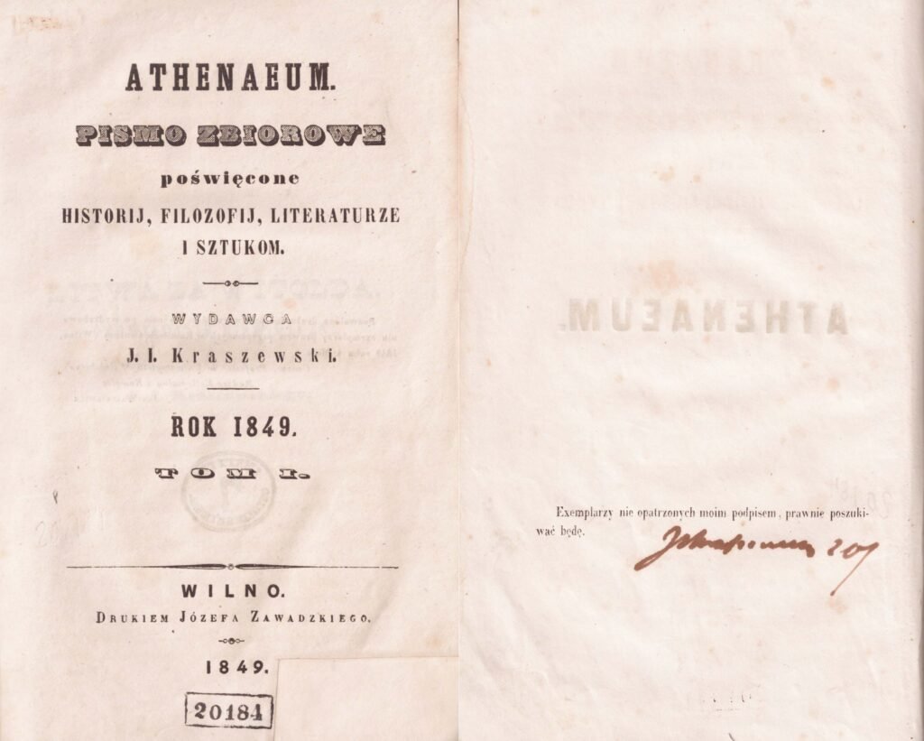 122. Atheneum su Kraševskio autografu, 6 tomai, 1849