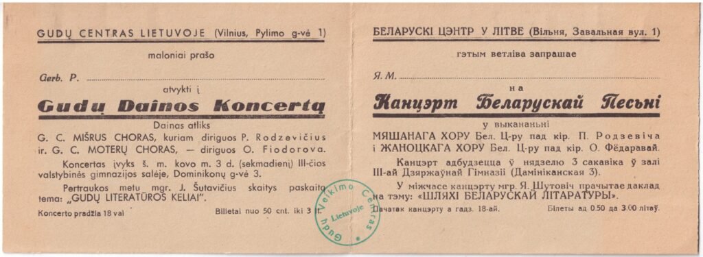Gudų centro Lietuvoje kvietimas į Gudų dainos koncertą.