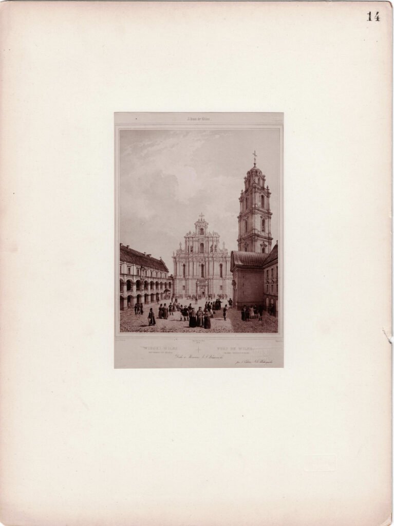 Fotoreprodukcija lakšto iš J. K. Vilčinskio „Album de Vilna“ su Vilniaus universiteto Skargos kiemo vaizdu. Fotografija 15,5 × 10, paklijuota ant kartono 32 × 24. Lakšto Nr. 14