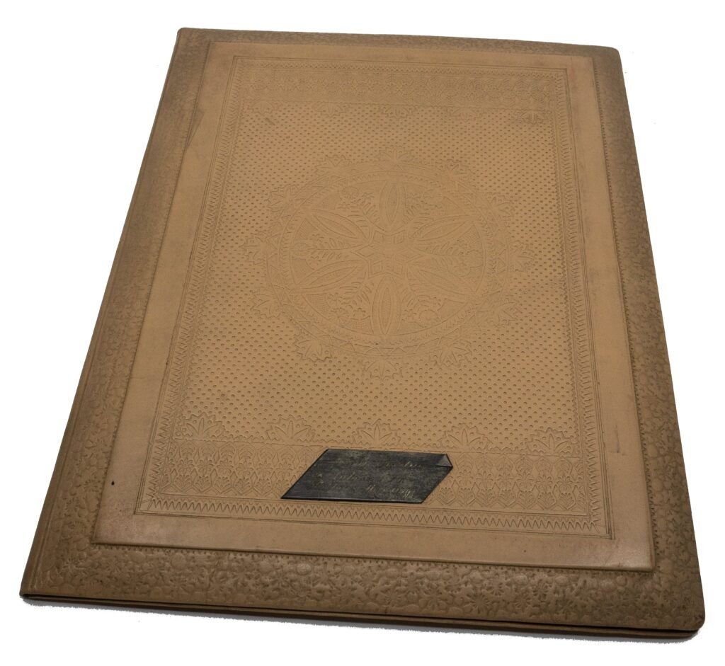1. Dokumentų dėklas su monograma „JŠ“. Oda, dažyta rudai; monogramas – sidabras, raudonas ir mėlynas emalis.