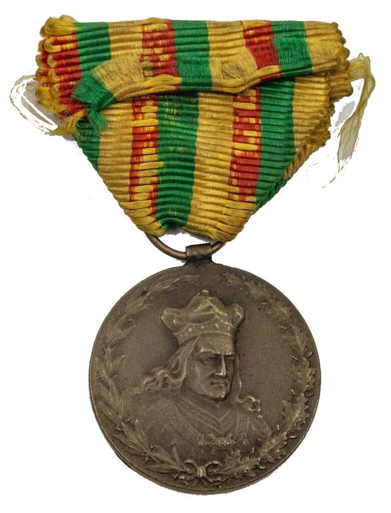 Bronza, skersmuo – 25,5 mm. Su šilkiniu kaspinėliu.