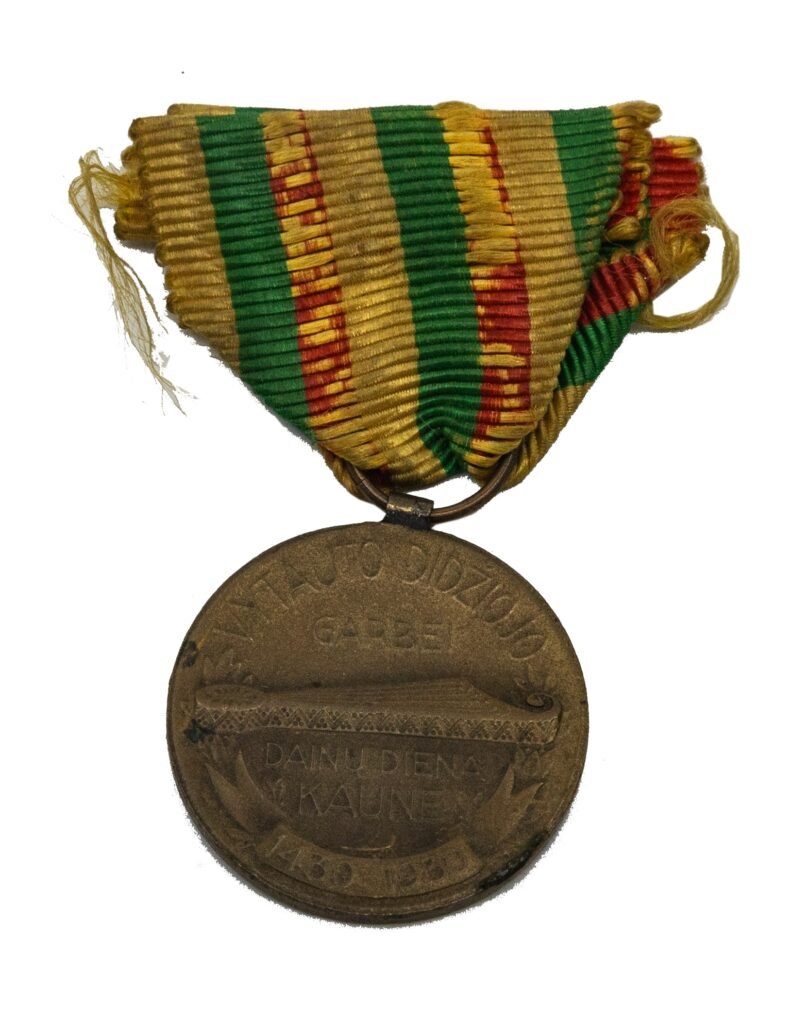 Reverso viduryje – gulinčios kanklės, ties galais ¬– laurų lapeliai. Viršuje pusračiu – įrašas: „VYTAUTO DIDŽIOJO / GARBEI“. Žemiau kanklių – įrašas: „DAINŲ DIENA / KAUNE“ ir juostelėje metai „1430–1930“.