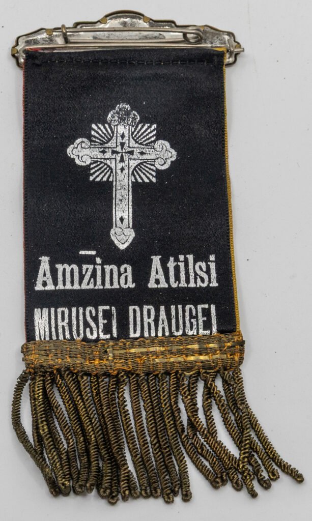 Bažnytinės brolijos ženklas-juostelė „Lietuvos Sunu ir Dukteru Draugija įsteigta 13 vasario 1921 m.